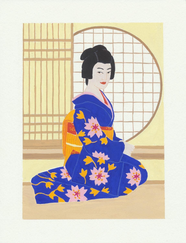Origineel schilderijtje "Japanse vrouw"