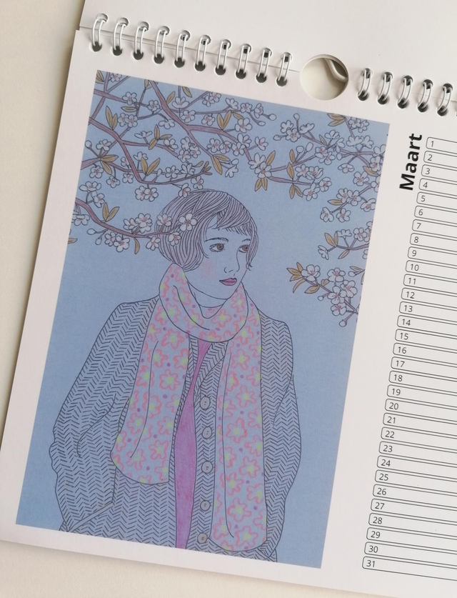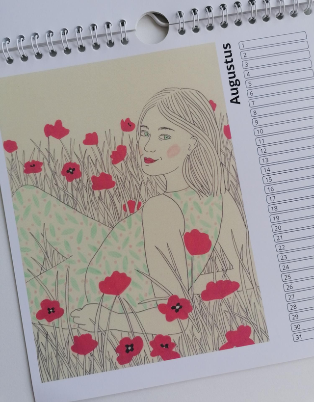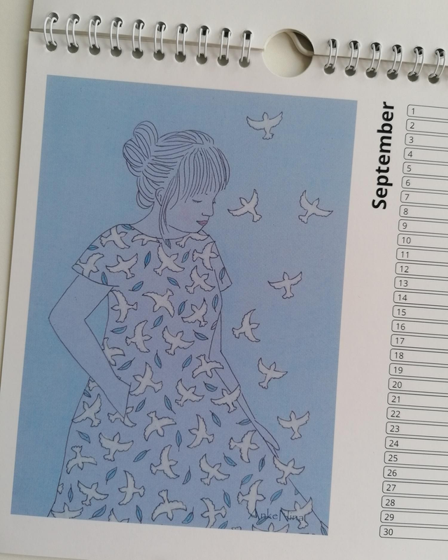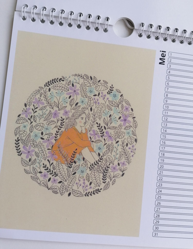 Vierkante verjaardagskalender 20×20cm, met 12 verschillende illustraties van Anke Nina.